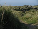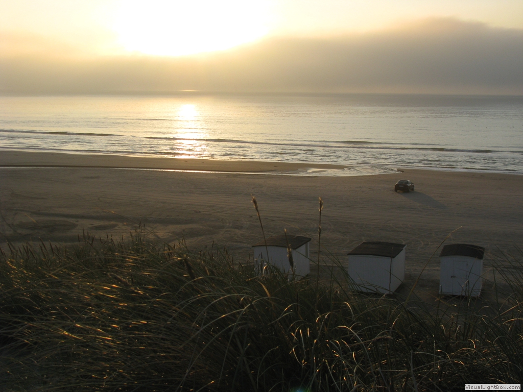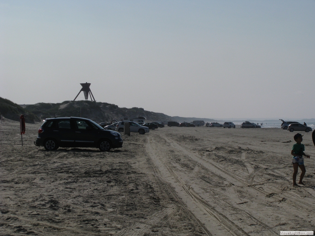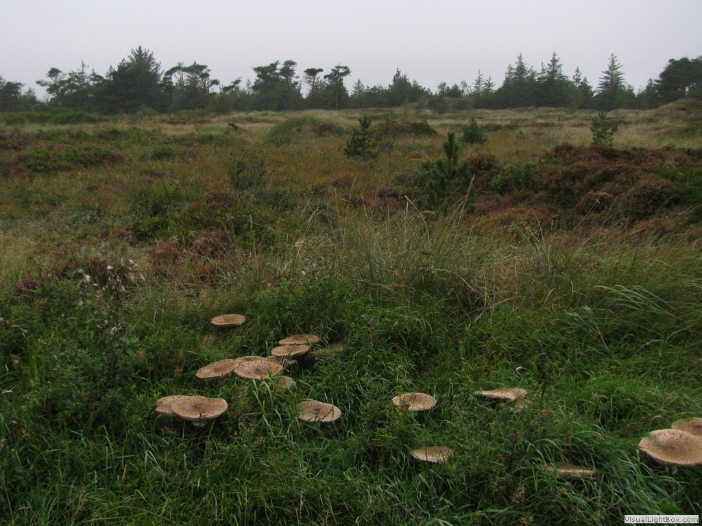 am andern Morgen ist es wieder eher grau noch selten habe ich so viele Pilze gesehen viele, viele Frösche am Wegerand Kirche von Rodhus einer der wenigen Seen hier (Blokhus Plantage) das meiste Wasser in solchen Kanälen zu finden dann in Blokhus am Strand: hier ist der Strand Parkplatz, Straße und Strand zu gleich  Blick in die Ferne schöne Häuser in den Dünen  Beschilderung der Strandstraße     nach einem Abstecher etwas weiter innen im Land auf der ersten "Dünenhochebene" zurück am Wasser Ankunft bei Nybaek die ersten typischen Strandhäuschen von Loekken  der Sonnenuntergang  und nun noch schnell in den Wald das Zelt aufbauen! lightbox jquery videoby VisualLightBox.com v6.1